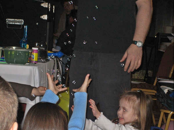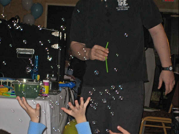 I am a bubble magician as well as a Balloon Artist and will perform a half hour highly interactive bubble magic show. Watch your guests spirits lift as I perform my one of a kind bubble extravaganza which captures the hearts of all who see it... GUARANTEED! Dazzle your party with my curtains of bubbles and delicate creations that disappear with just a puff of air. The kids will go wild, the adults do too.